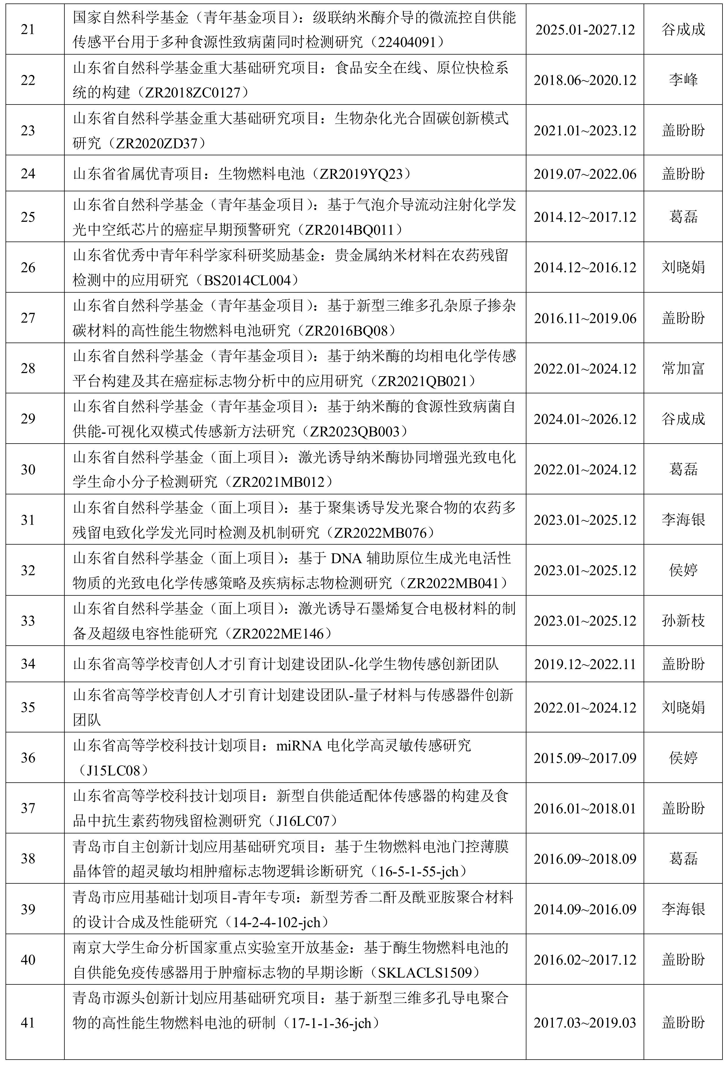课题组承担项目一览表