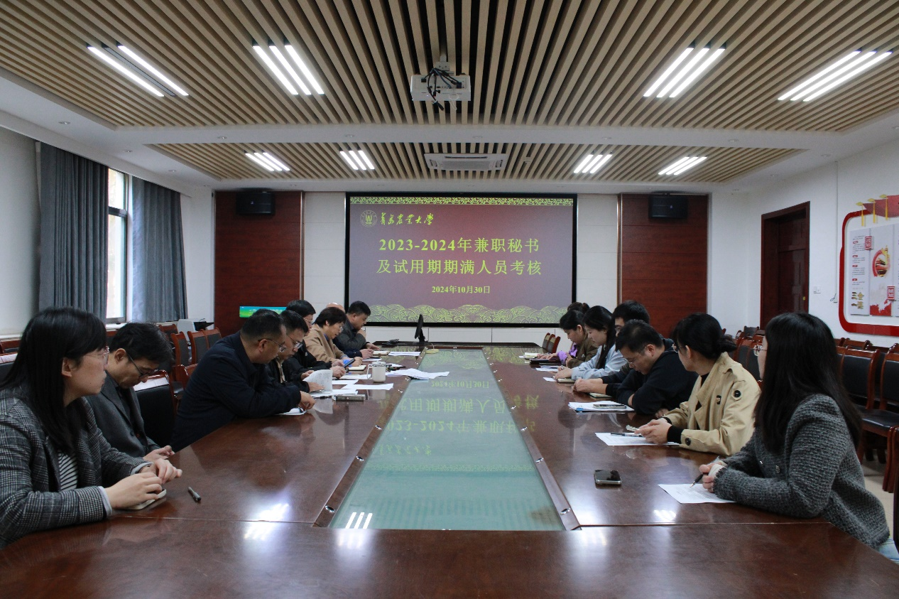 2024年10月30日,金沙集团1862cc于化学楼207对2023-2024年兼职秘书及试用期期满人员进行考核,学院党政联席会成员及各系主任出席考核会。