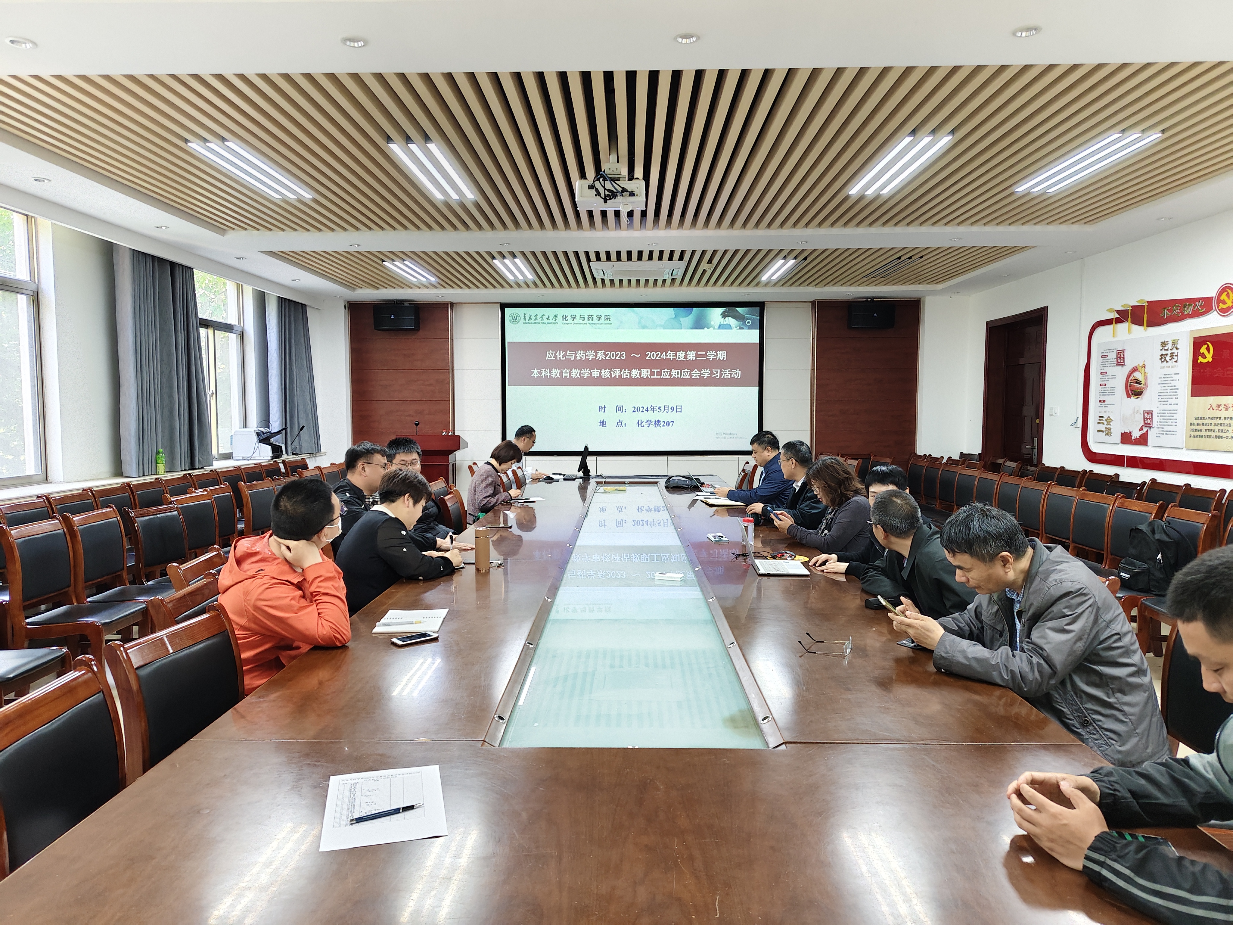 为进一步做好新一轮本科教育教学审核评估迎评工作,5月9日上午,金沙集团1862cc应化与药学系于化学楼会议室,开展本科教育教学审核评估教职工应知应会学习活动,本次活动邀请学院教学院长徐鲁斌参加指导,系副主任孔祥平主持,系全体教师参加。