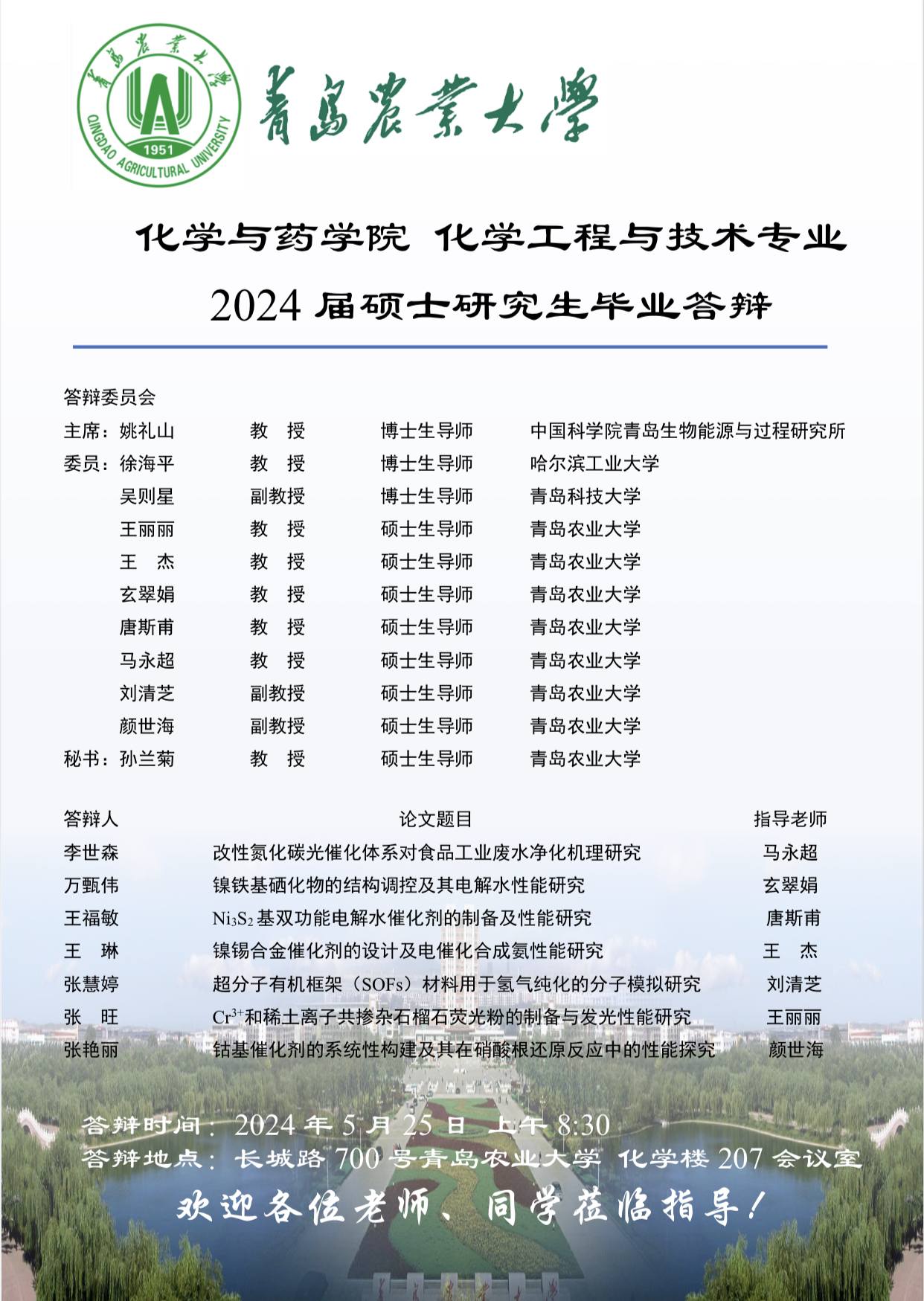 化学与药学院化学工程与技术专业2024届硕士研究生毕业答辩
