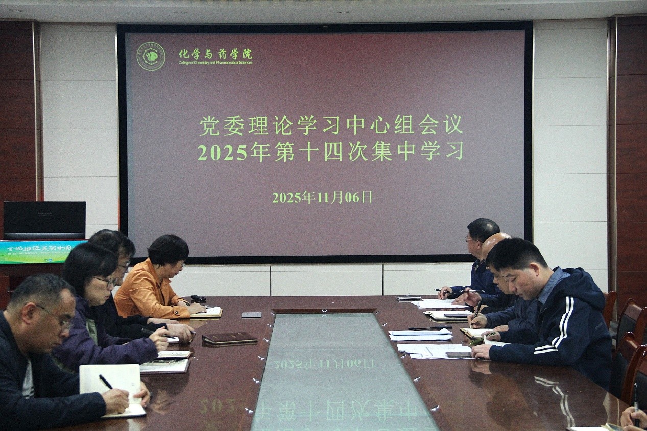 11月6日,化学与药学院在化学楼207会议室开展党委理论学习中心组2025年第十四次集中学习,学院党委书记王进国主持会议,全体中心组成员参加。