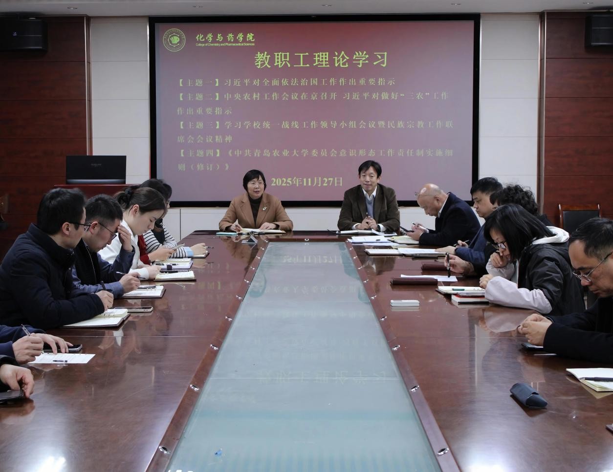 11月27日,化学与药学院于化学楼207会议室开展教职工理论学习,会议由学院党委书记由源清主持,全体教职工参加。
