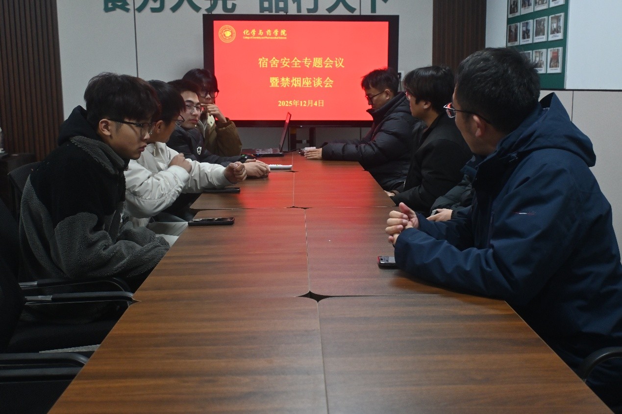 为筑牢宿舍安全屏障,深入推进宿舍文明建设,12月4日,化学与药学院于城阳校区西苑一站式服务社区召开宿舍安全工作会议暨禁烟座谈会。会议由辅导员江守林主持、学院宿舍管理中心干事及各年级学生代表参加。