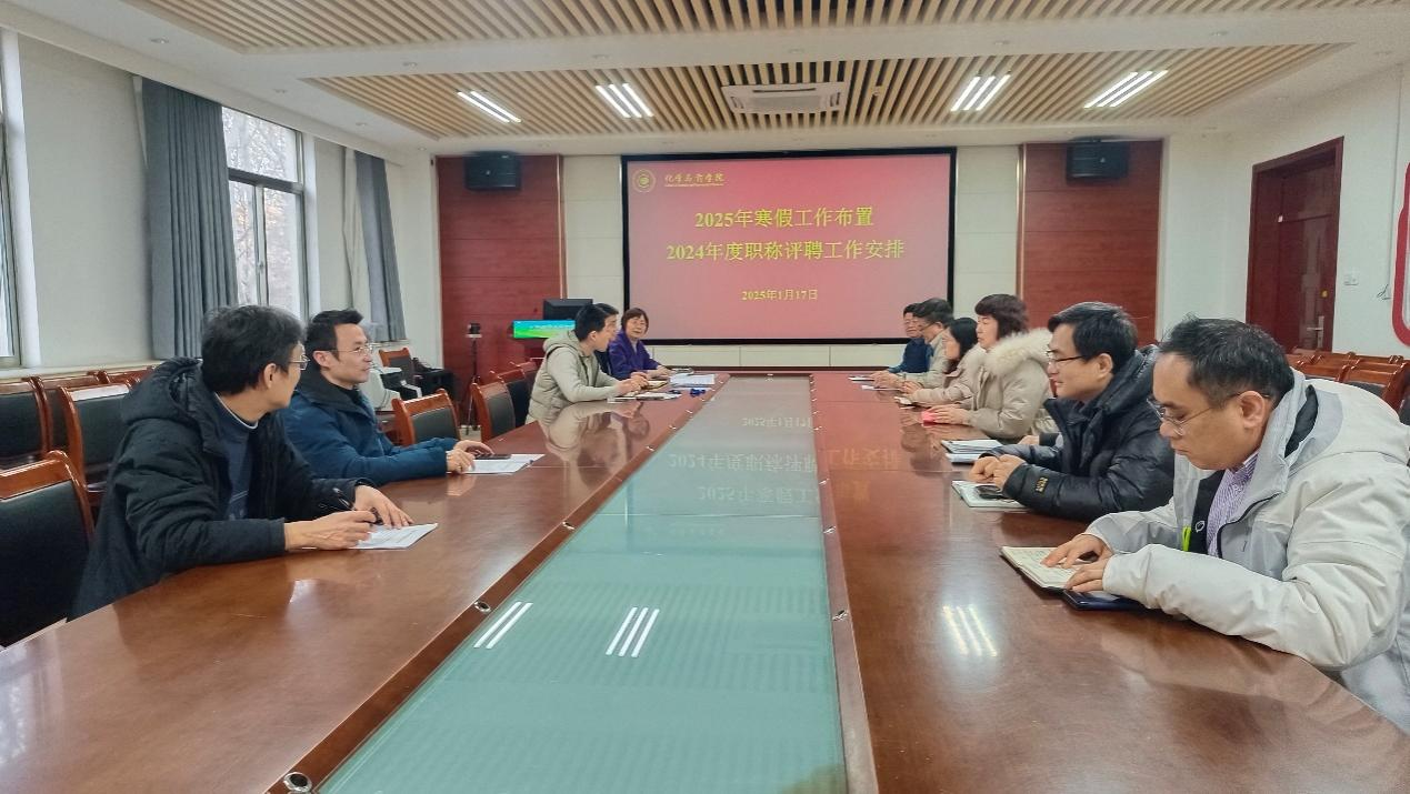 2025年1月17日下午,金沙集团1862cc在学院207会议室召开2025年寒假工作布置及2024年度职称评聘工作安排推进会,会议由院长龚良玉主持,学院领导、系主任及学院骨干参会。