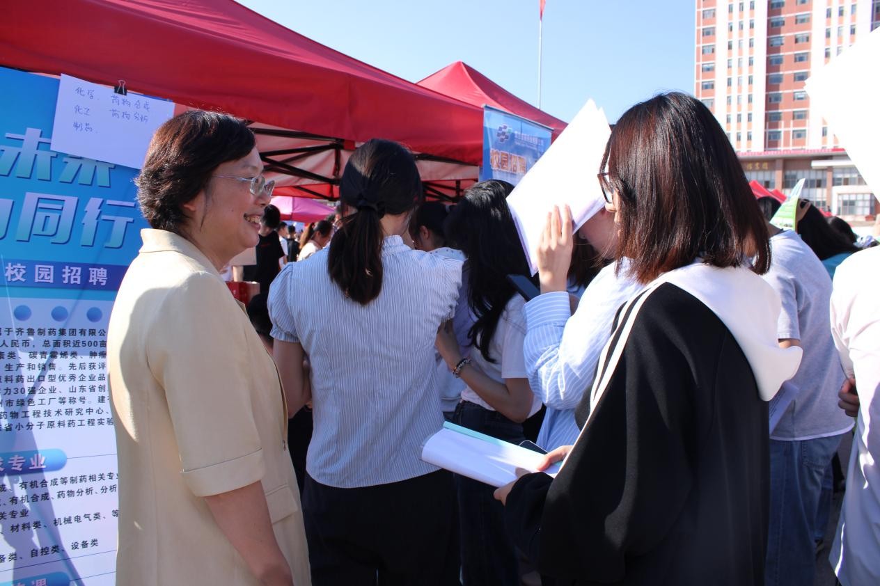 招聘会现场气氛热烈,来自省内外300余家优质企业参会,涵盖生物科技、制药工程、现代农业、食品加工等多个领域。龚良玉逐一走访企业展位,与企业招聘负责人亲切交流,详细了解岗位需求、薪资待遇、人才培养计划等情况,并就校企合作、实习基地建设、产学研融合等话题展开深入对接。学院各专业教师也主动向企业推介毕业生,结合学生专业特长与企业用人需求进行精准匹配。龚良玉还与参会毕业生亲切交谈,询问求职进展和职业规划,鼓励大家树立正确的就业观,积极把握机遇,主动展示自我。