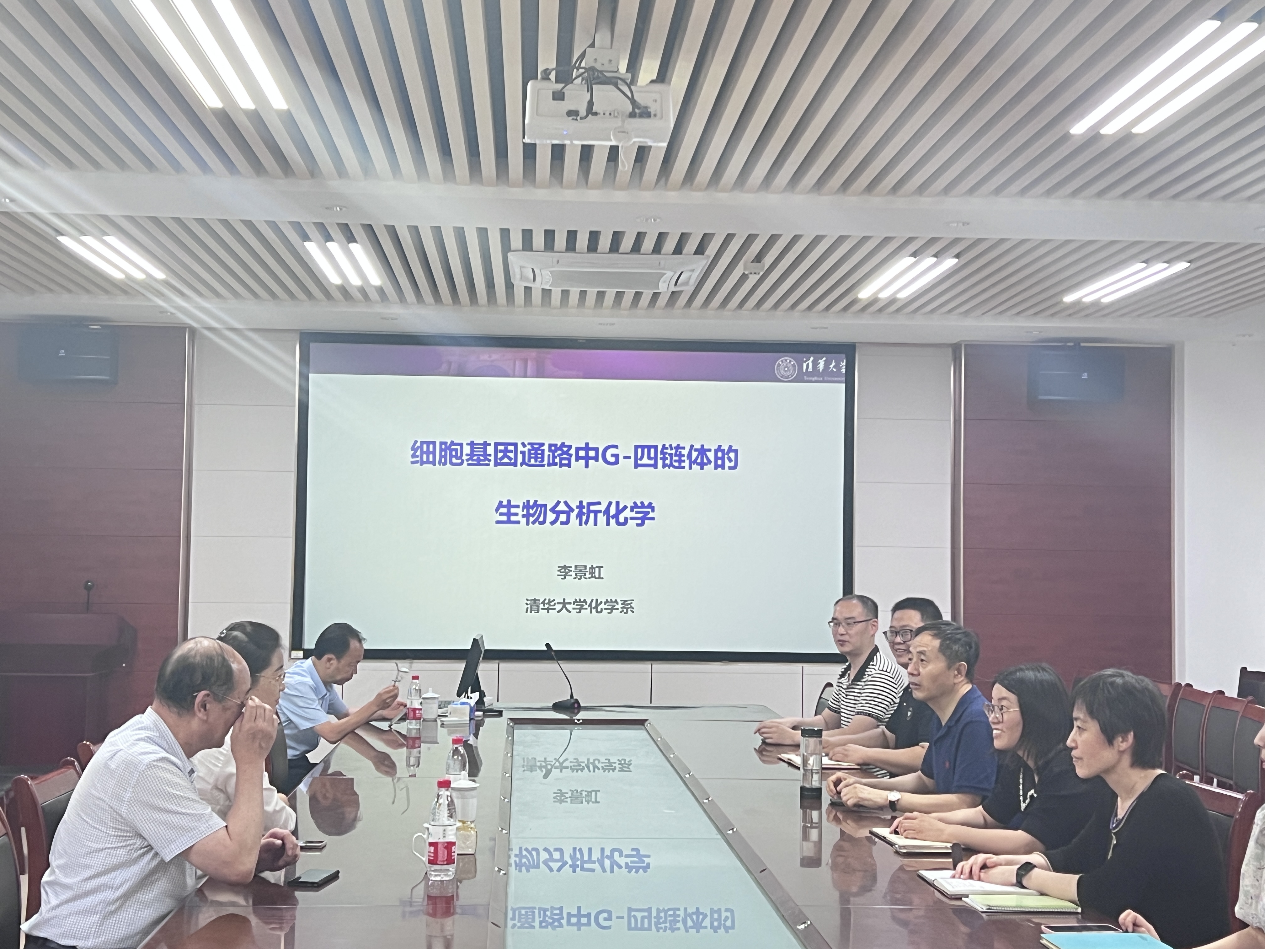 2023年6月18日,课题组邀请清华大学李景虹院士到课题组指导工作,并作了题为《细胞基因通路中G-四链体的生物分析化学》的精彩报告。